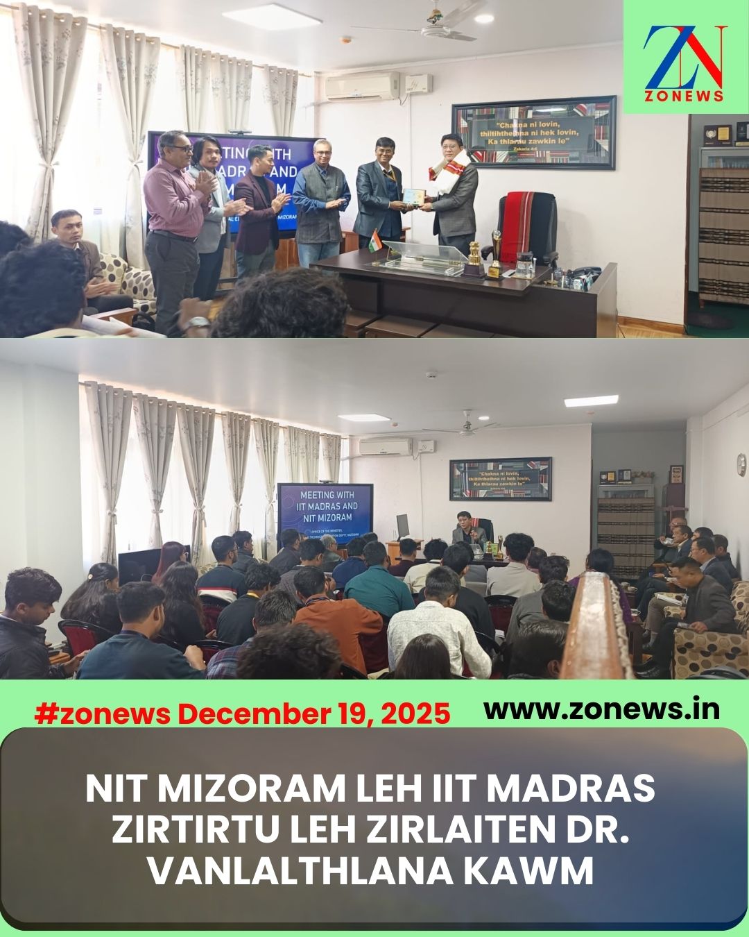 #ZONEWS Aizawl December 19, 2025 : Vawiin khan National Institute of Technology (NIT) Mizoram leh Indian Institute of Technology (IIT) Madras a thawk zirtirtu leh zirlaiten Higher & Technical Education Minister Dr. Vanlalthlana chu a pisaah an kawm.
