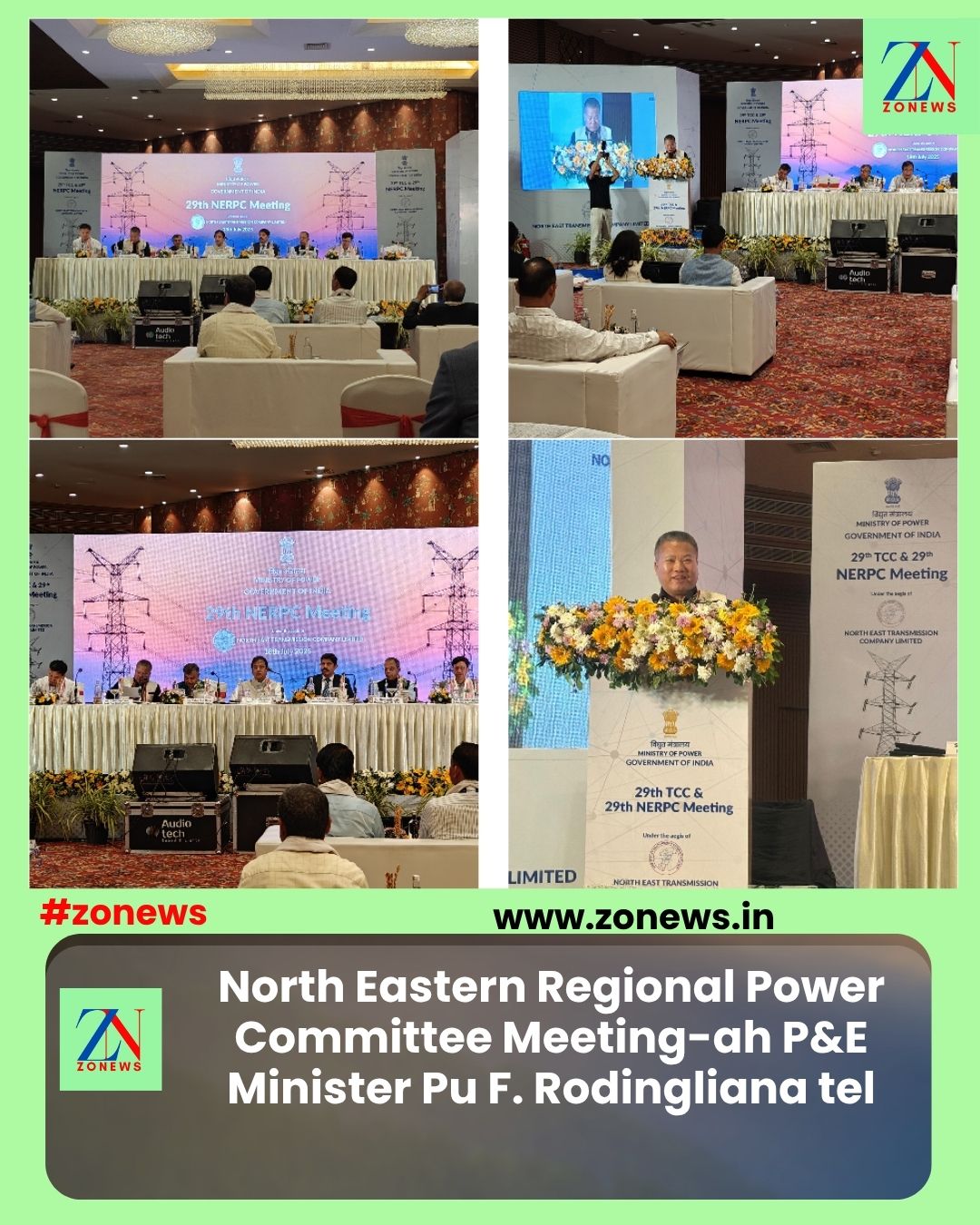 #ZONEWS July 18, 2025: Vawiin khan Mayfair Hotel, Guwahati-ah North Eastern Regional Power Committee (NERPC) meeting vawi 29-na neih niin, he hunah hian Mizoram Power & Electricity Minister Pu F. Rodingliana chu telin thu a sawi a ni.