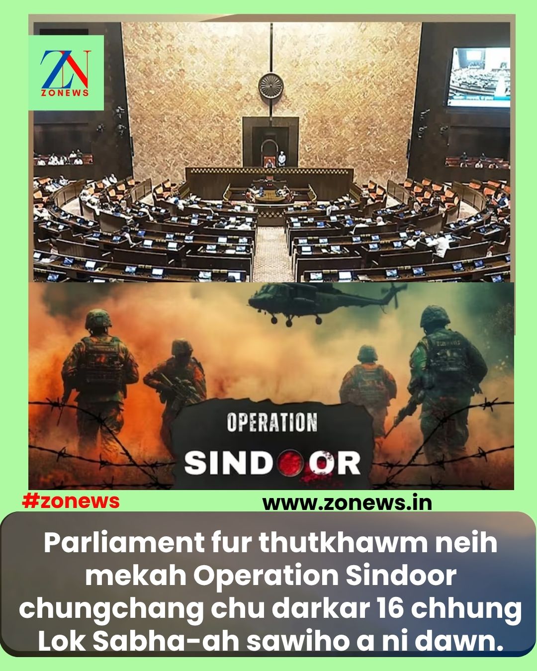 Parliament fur thutkhawm neih mekah Operation Sindoor chungchang chu darkar 16 chhung Lok Sabha-ah sawiho a ni dawn.