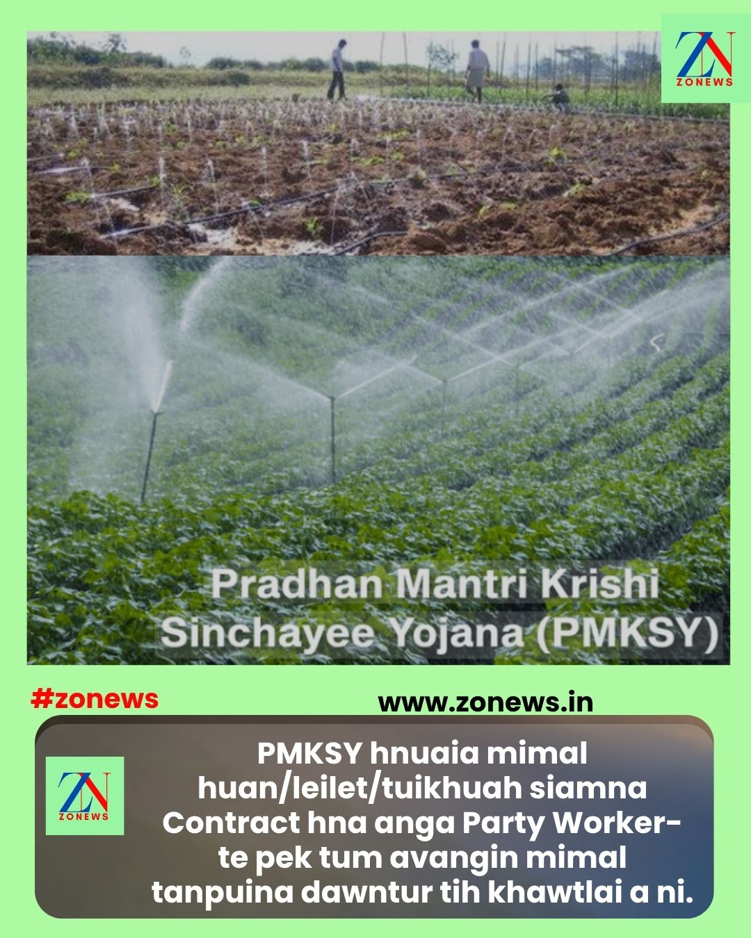 PMKSY hnuaia mimal huan/leilet/tuikhuah siamna Contract hna anga Party Worker-te pek tum avangin mimal tanpuina dawntur tih khawtlai a ni.