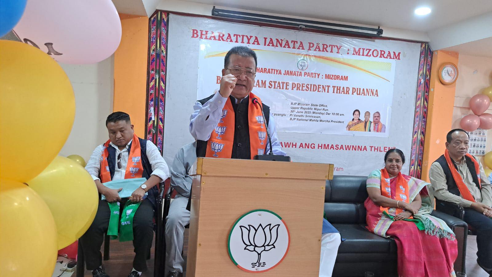 A tawp ber ah chuan BJP State President kalo nih hian, BJP Member lo ni tawh zawng zawngte, Party danga engemaw avanga lo peng te kan awm ani thei a, nimahsela tun ah hian Mizoram leh hnamin hma a sawn zel theihna turin BJP Member lo ni tawh zawng zawng te chu BJP ah lo kir leh vek turin ka sawm tak meuh meuh che u a, Mizoram mipuite, thalai lehkha thiam tak takte hmabak eng kan neih theihna tur atana BJP a lolut a Mizoram tana hnathawh kawr min hakpui turin ka sawm vek che u a ni.