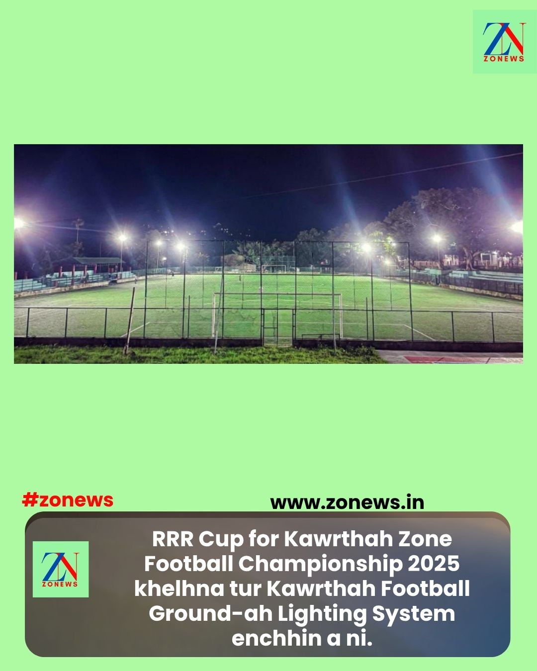 RRR Cup for Kawrthah Zone Football Championship 2025 khelhna tur Kawrthah Football Ground-ah Lighting System enchhin a ni.