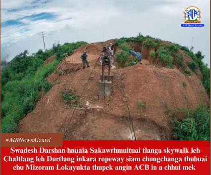 Swadesh Darshan hnuaia Sakawrhmuituai tlanga skywalk leh Chaltlang leh Durtlang inkara ropeway siam chungchanga thubuai chu Mizoram Lokayukta thupek angin Anti Corruption Bureau (ACB) chuan a chhui mek a, chhui zawh hun tur hriat a la ni lo.