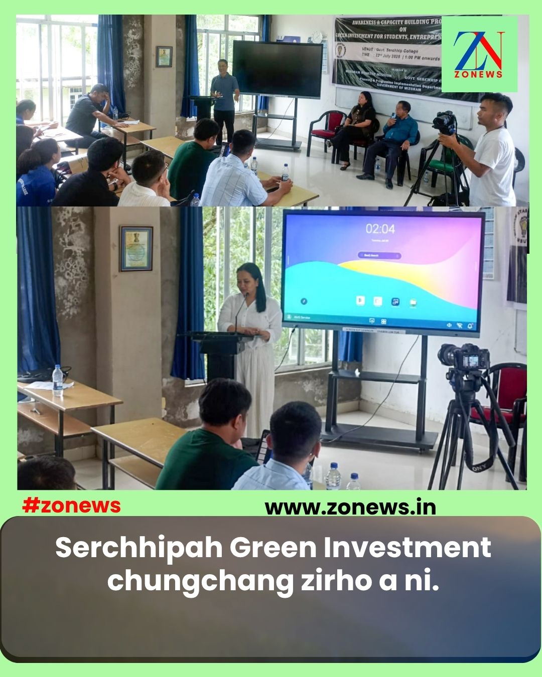 #ZONEWS July 22, 2025: One day Awareness and Capacity Building on Green Investment programme chu vawiin khan Govt. Serchhip College ah Mizoram Startup Mission te nena tangkawpin buatsaih a ni.