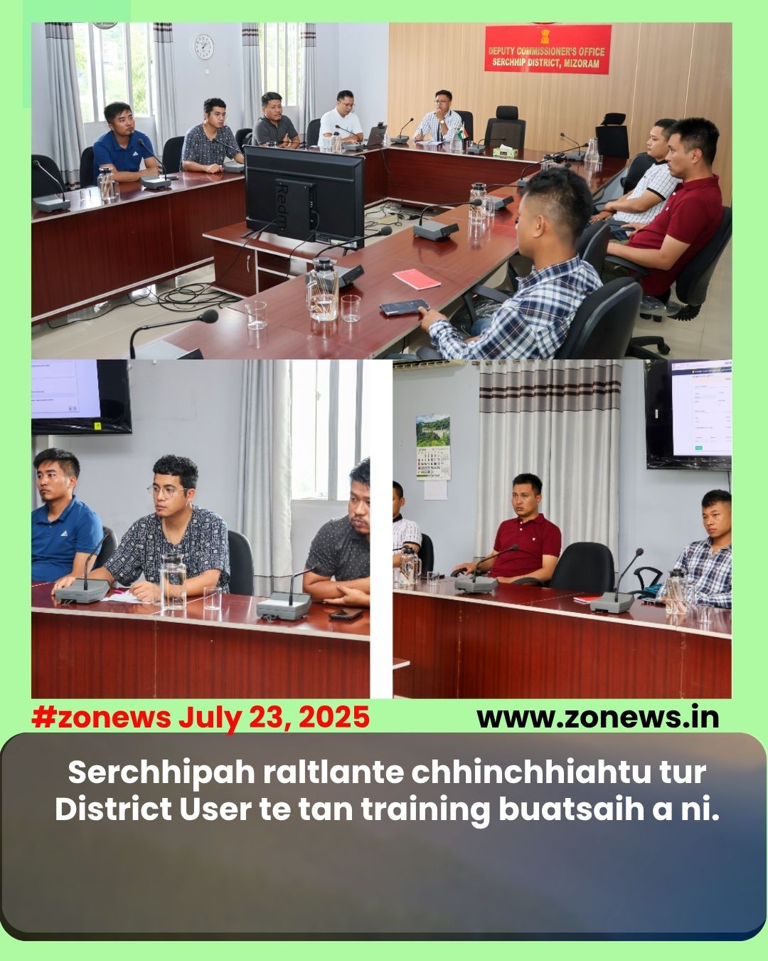 #ZONEWS Serchhip, July 23, 2025: Myanmar atanga raltlante biometric enrollment hmanga chhinchhiah an nih tawh dawn avangin vawiin khan Serchhip District ah a mawhphurtu turte tan ‘District User training for Biometric Enrollment of Displaced Persons’ neih a ni. He training Serchhip DC Meeting Hall-a neih hi Nodal Officer Pu Vanthangpuia, SDC chuan a kaihruai a ni.