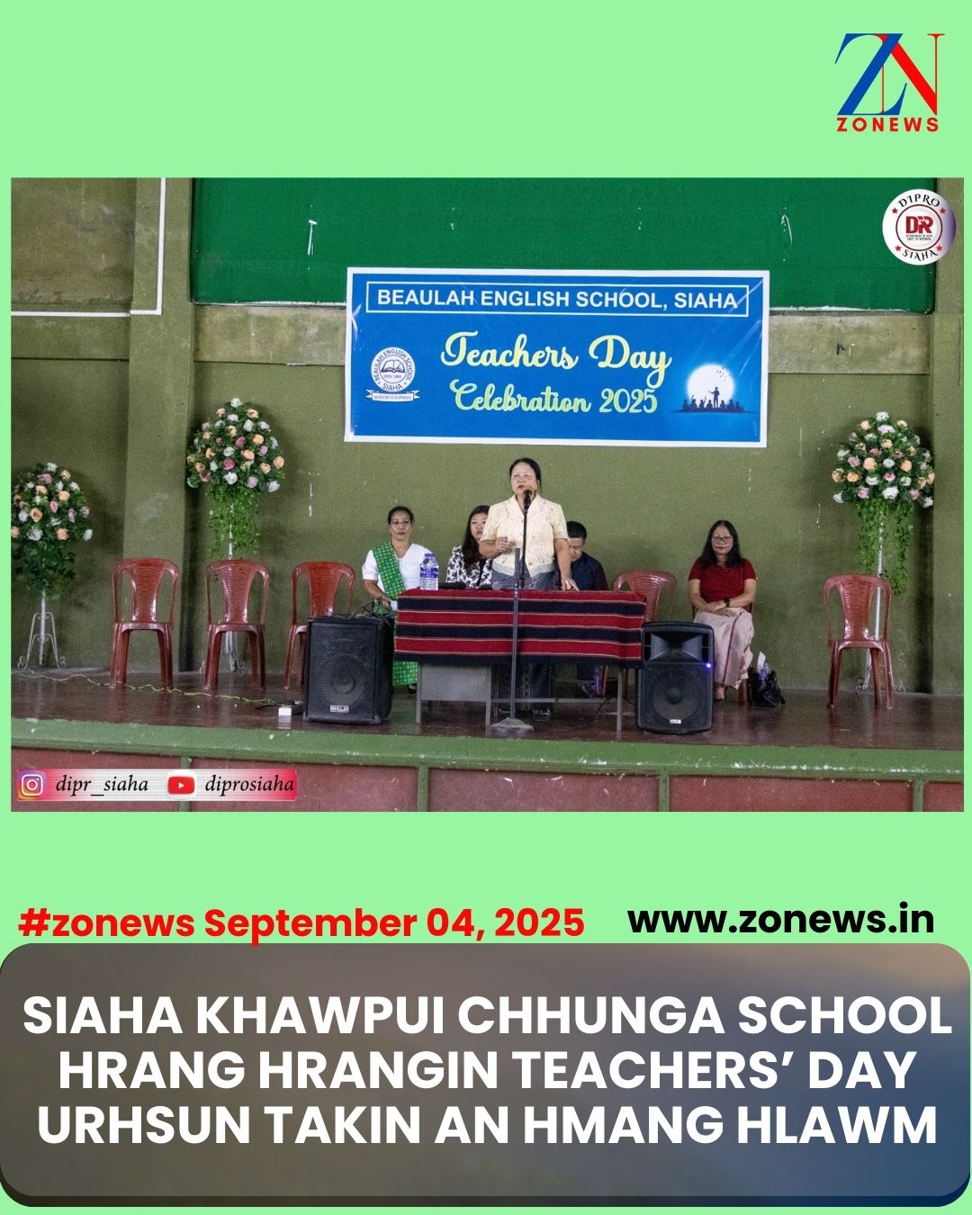#ZONEWS Siaha September 04, 2025: Mizoram sawrkar leh District Working Committee on Celebration of Teachers’ Day-in ruahmanna a siam angin vawiinah Siaha khawpui chhunga school hrang hrangin urhsun takin Teachers’ day an hmang hlawm.
