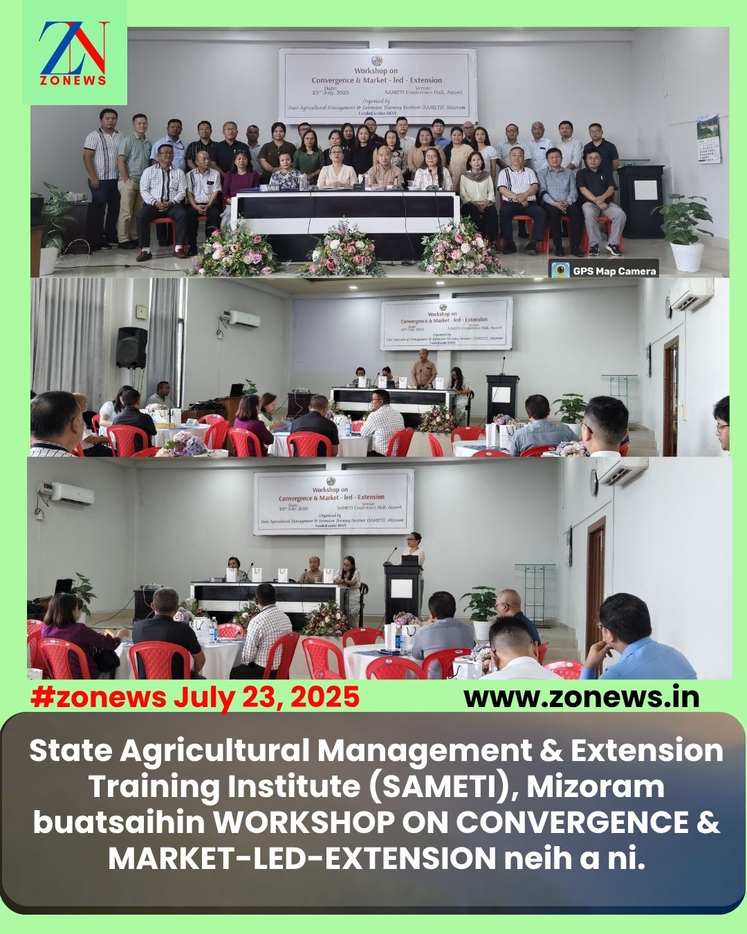 #ZONEWS July 23, 2025: Vawiin khan State Agricultural Management & Extension Training Institute (SAMETI), Mizoram buatsaihin State Level Workshop on Convergence & Market-led-Extension programme SAMETI Conference Hall, Directorate of Agriculture & Farmers Welfare, Tuikual South-ah neih a ni.