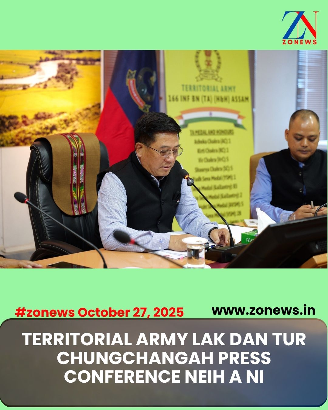 #ZONEWS Aizawl October 27, 2025: Vawiin khan MLA Lt. Col. Clement Lalhmingthanga hovin Territorial Army lak dan tur chungchangah DGP Conference Hall, Police Headquarters, Khatlaah press conference neih a ni.