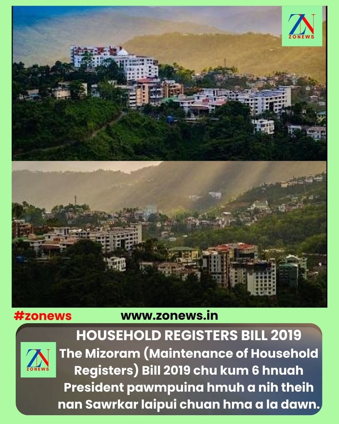 The Mizoram (Maintenance of Household Registers) Bill 2019 chu kum 6 hnuah President pawmpuina hmuh a nih theih nan Sawrkar laipui chuan hma a la dawn.