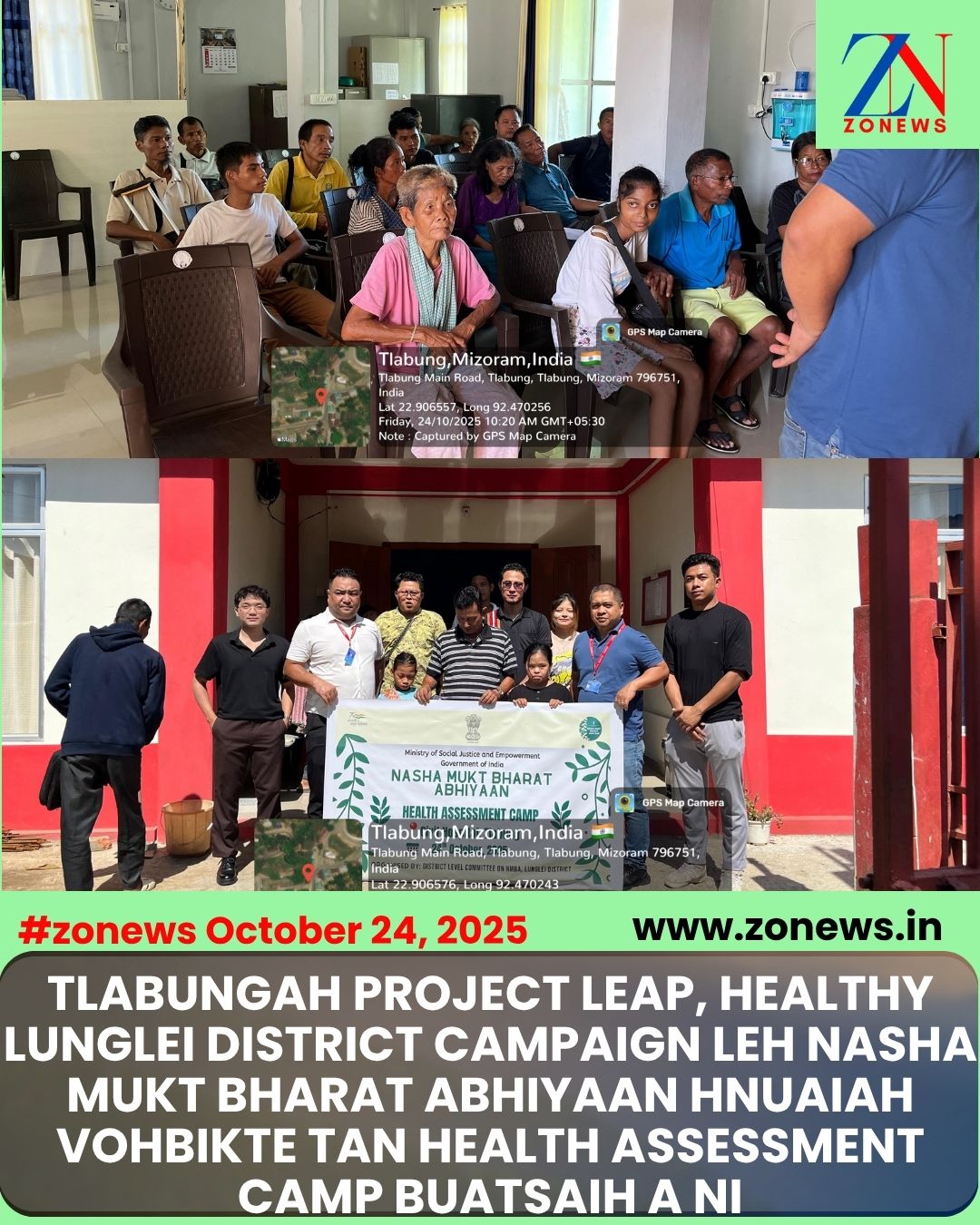 #ZONEWS Lunglei October 24, 2025: Lunglei District Bawrhsap hma laknaa Lunglei District-a vohbikte chawi kanna tur ruahmanna – Project LEAP (Lunglei’s Empowerment for Access and Equity for all Persons), taksa leh nunphung hrisel inzirtirna – Healthy Lunglei District Campaign leh ruihhlo do beihpui thlakna – Nasha Mukt Bharat Abhiyaan hma lakna hnuaiah vawiin khan Tlabunga Sub-District Hospital-ah vohbik (person with disability – PwD)-te hriselna dinhmun endikna, health assessment camp buatsaih a ni.