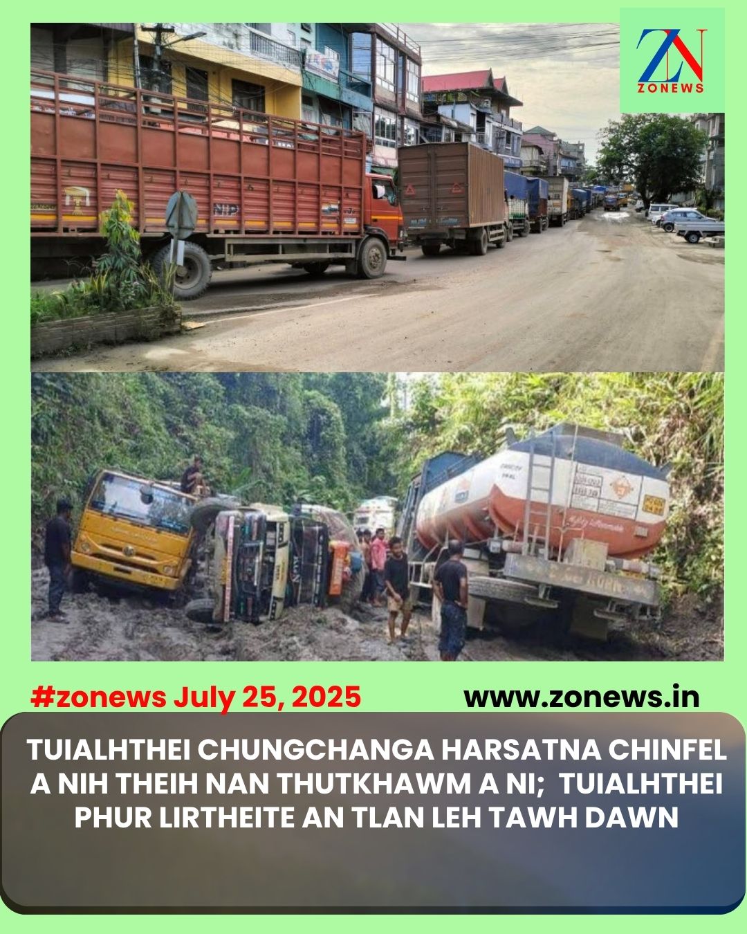 National Highway 306 – Kawnpui leh Sairang inkar kawng chhiat avanga Tanker truck driver ten July ni 19, 2025 atanga tuialhthei phurh an tihtawp lailawk avanga harsatna thleng mek chinfel thuai a nih theih nan sawihona neih a ni a, Public Works Department, Government of Mizoram puihnaa NHIDCL-in kawng chhe siam hna an thawh mek chuan duhthusam la pha chiah lo mah se, hmasawnna a awm viau tawh nia hriat a nih avangin mipui harsatna sutkian vat a nih theih nan vawiin ni 25 July, 2025 tlai lam atang khan tuialhthei phur lirtheite tlan tan leh tura thutlukna siam a ni.
