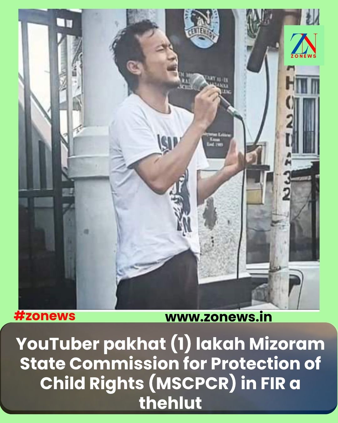 #ZONEWS July 21, 2025: Vawiin khan MSCPCR chuan Aizawl Police Station OC, Pu Lalnunmawia hnenah YouTuber, Michael Siakeng NicholasS lakah FIR a thehlut. MSCPCR chuan ni 18.07.2025 (Zirtawpni) khan YouTube Channel neitu pali (4) te chu naupang pakhat harsatna tawk chu a nihna chhuichhuah theihna tura video an YouTube Channel-a an upload avangin a summon a.