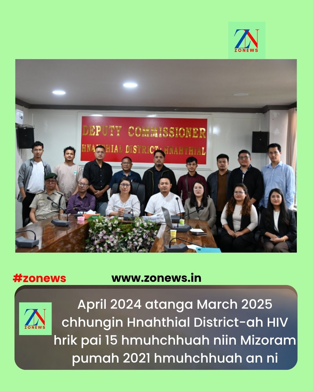 #ZONEWS: April 2024 atanga March 2025 chhungin Hnahthial District-ah HIV hrik pai 15 hmuhchhuah niin Mizoram pumah 2021 hmuhchhuah an ni