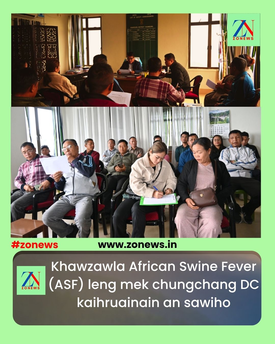 #ZONEWS July 9, 2025: Vawiin chawhma dar 11 khan DC Chamber Khawzawl-ah Khawzawl Town Area huamchhunga African Swine Fever (ASF) leng mek chungchang sawihona hun neih a ni a, Khawzawl Bawrhsap, Pu K. Vanlalthiana’n a kaihruai.