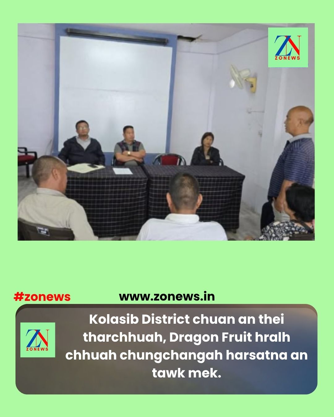 He meeting, DHO Conference hall, Kolasib a neih hi MiDFA Kolasib District President Pu R. Lalhmingthanga kaihruaii, dragon fruit chingtuten kum hmasa lam aiin tharchuak tam zawk tura an in beisei laiin, thenkhat chu an Dragon fruit in natna a kai nasat avangin kum hmasa lam an phak dawn lo niin an sawi a, he an harsatna tawh chungchangah nasa zawka hma lakpui turin thuneitu te an beisei tih an sawi.
