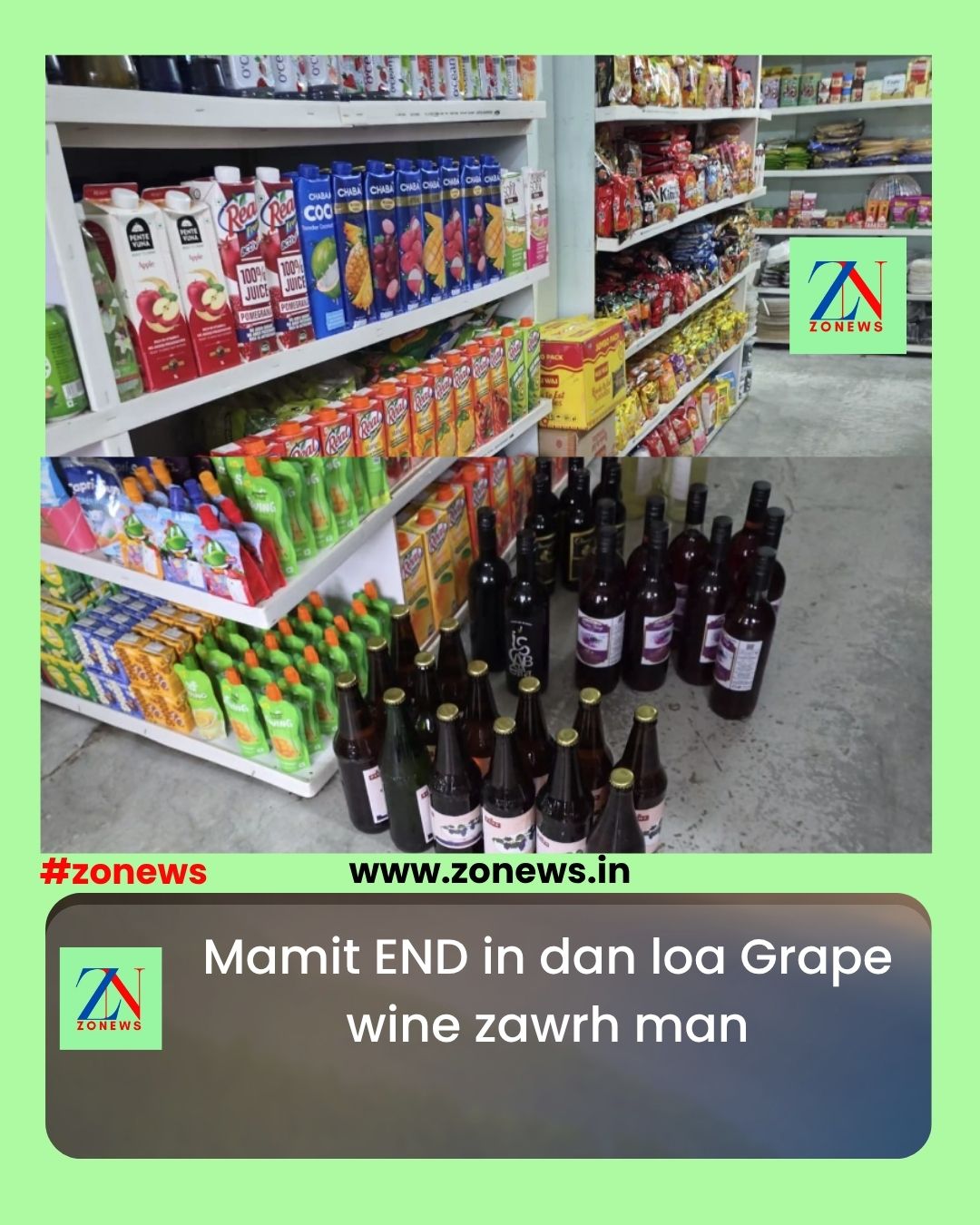 #ZONEWS July 8, 2025: Vawiin khan END Mamit duty te chuan Mamit Bazar Veng-ah dan lova Grape Wine zuar MART dawr chu an dap niin he dawr aṭang hian Grape Juice chi hrang hrang :-