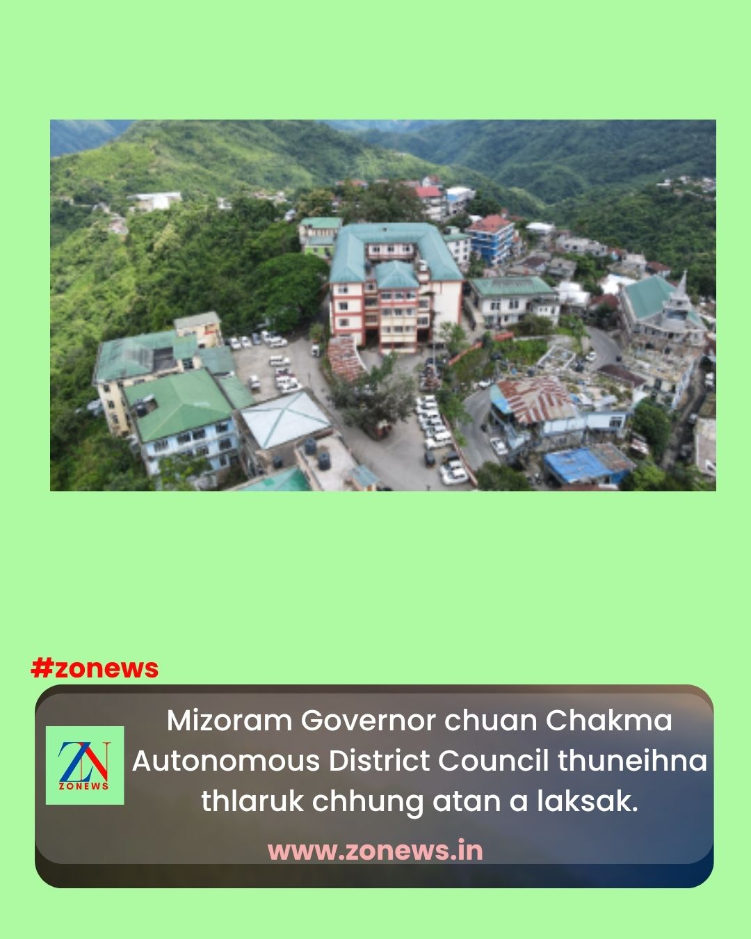 #ZONEWS: Mizoram Governor chuan Chakma Autonomous District Council thuneihna thlaruk chhung atan a laksak.