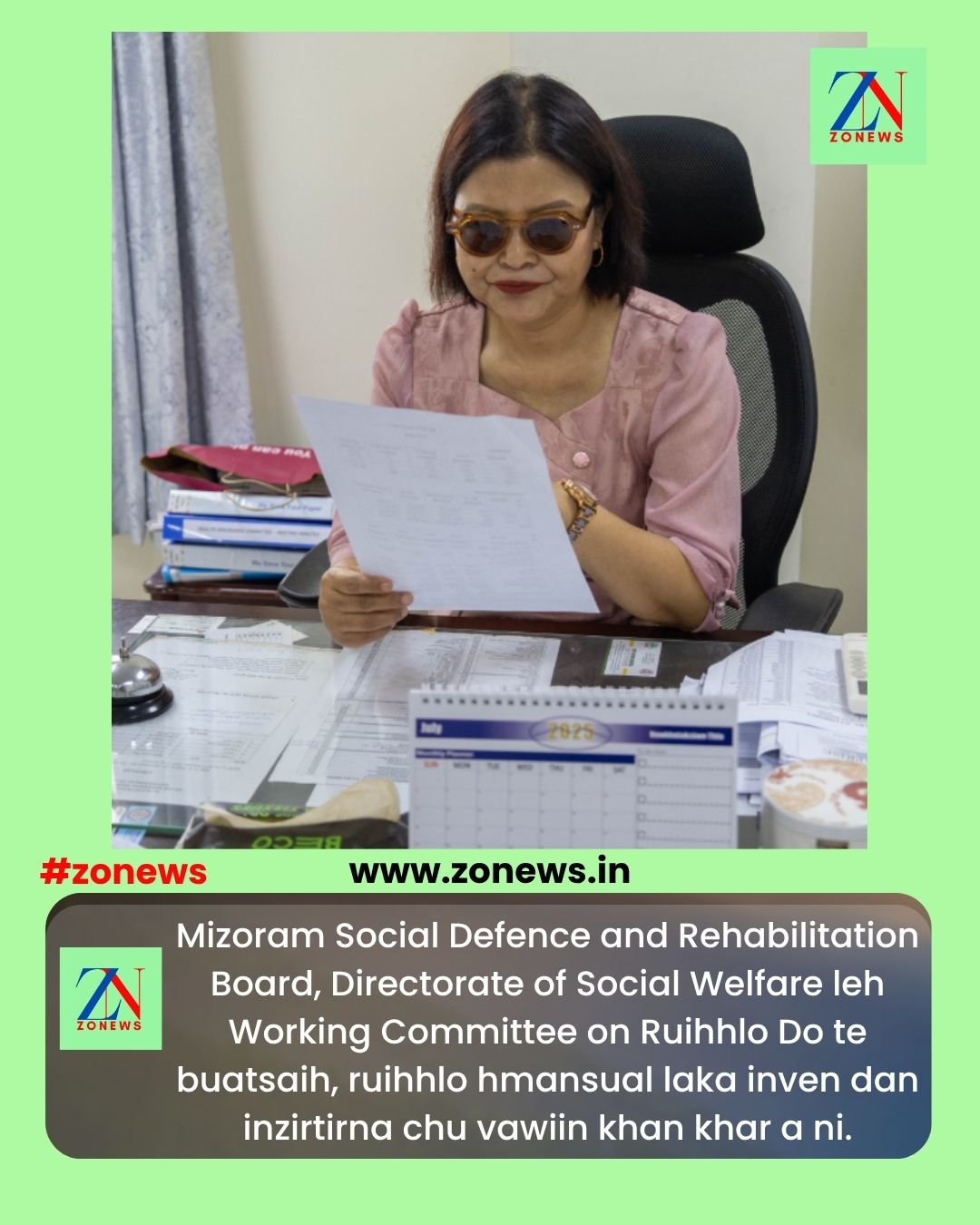 #ZONEWS July 9, 2025: Mizoram Social Defence and Rehabilitation Board, Directorate of Social Welfare leh Working Committee on Ruihhlo Do-te tangkawp buatsaih, ni hnih chhung awh, midang zirtir chhawng tura ruat kohhran hmeichhia leh hmeichhe NGO-te tana ruihhlo hmansual laka inven dan inzirtirna, ‘Two Days Master Trainers’ Training on Drug Abuse Prevention for Women Church Leaders and Women Federations in Mizoram’ kharna hun chu vawiin chawhnu khan I&PR Conference Hall, Lianchhiari Run-ah neih a ni a. He hun hi Social Welfare, Women & Child Development Minister Pi Lalrinpuii chuan khuallian niin a hmanpui a ni.